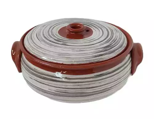 Ručno izrađena đuvečara prečnika 23 cm, visine 10 cm bez poklopca i 14 cm sa poklopcem, idealna je za pripremu i serviranje hrane. Ova plitka đuvečara zapremine 3 litre je savršen dodatak svakoj kuhinji koja ceni autentično ručno pravljeno keramičko posuđe. Uživajte u pripremi omiljenih jela sa ovom đuvečarom koja će dodati poseban šarm vašoj trpezi.